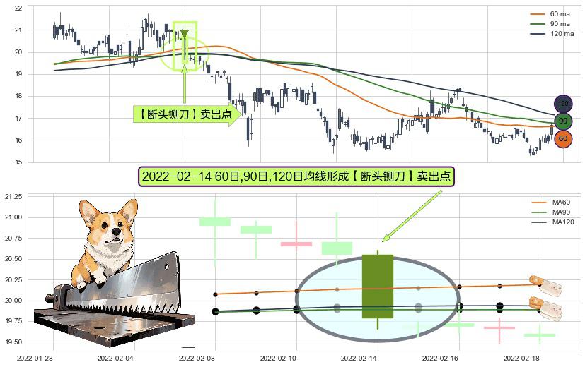 ⚀ 2022-02-14日显现 60日-90日-120日均线 【断头铡刀】卖出点 看空信号,后市看跌,卖出
