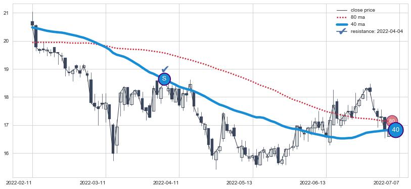 ⚂ 2022-06-28-日均线向上突破,2022-06-29-日重新下穿均线破位,均线阻力再次生效