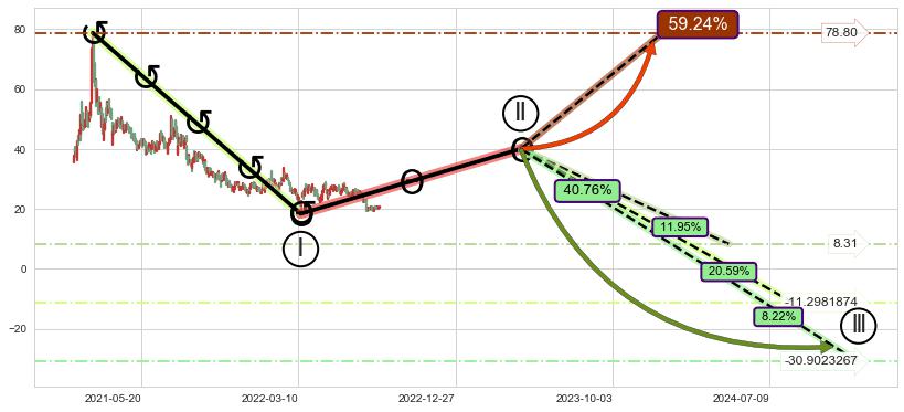 ➣ 大趋势循环浪继续向下概率40.76%