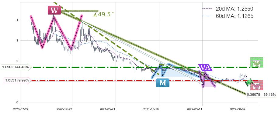 ➣ D点拟合预测价格1.4970,距离最后交易收盘价格1.1700相差 +27.95%