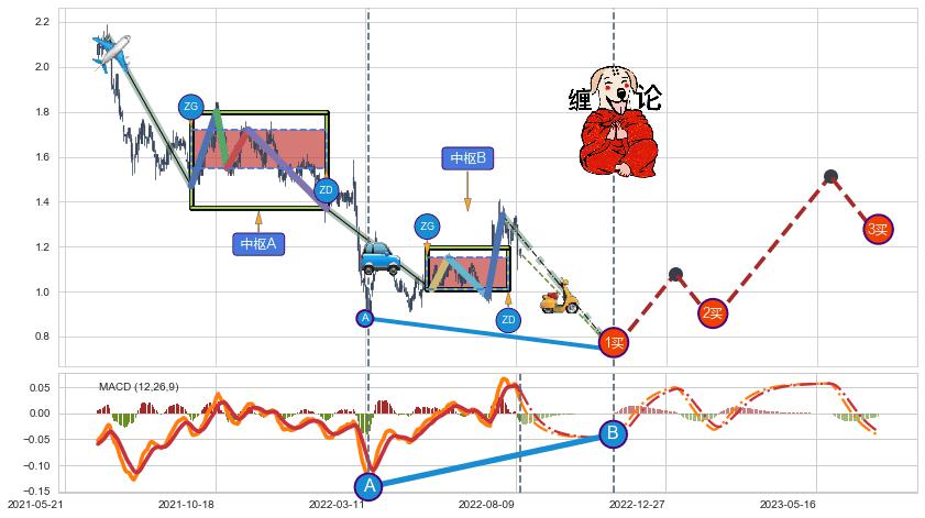 ➢ 【中枢B】:2022-05-19-2022-07-27,中枢由4笔构成,共48交易日, ZG=1.1500, ZD=1.0100