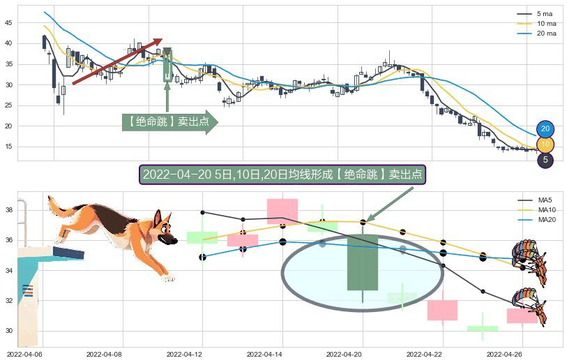 ⚀ 2022-04-20日显现 5日-10日-20日均线 【绝命跳】卖出点 看空信号,后市看跌,卖出