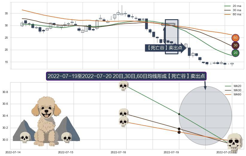 ⚀ 2022-07-20-日至2022-07-20-日显现 20日-30日-60日均线 【死亡谷】卖出点 看空信号,后市看跌,卖出
