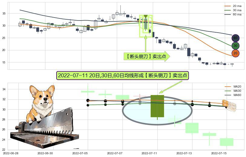 ⚀ 2022-07-11日显现 20日-30日-60日均线 【断头铡刀】卖出点 看空信号,后市看跌,卖出
