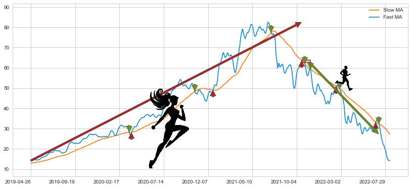 2021-11-19至2022-07-08 慢线与快线呈空头排列, 慢线与快线接触少,无缠绕