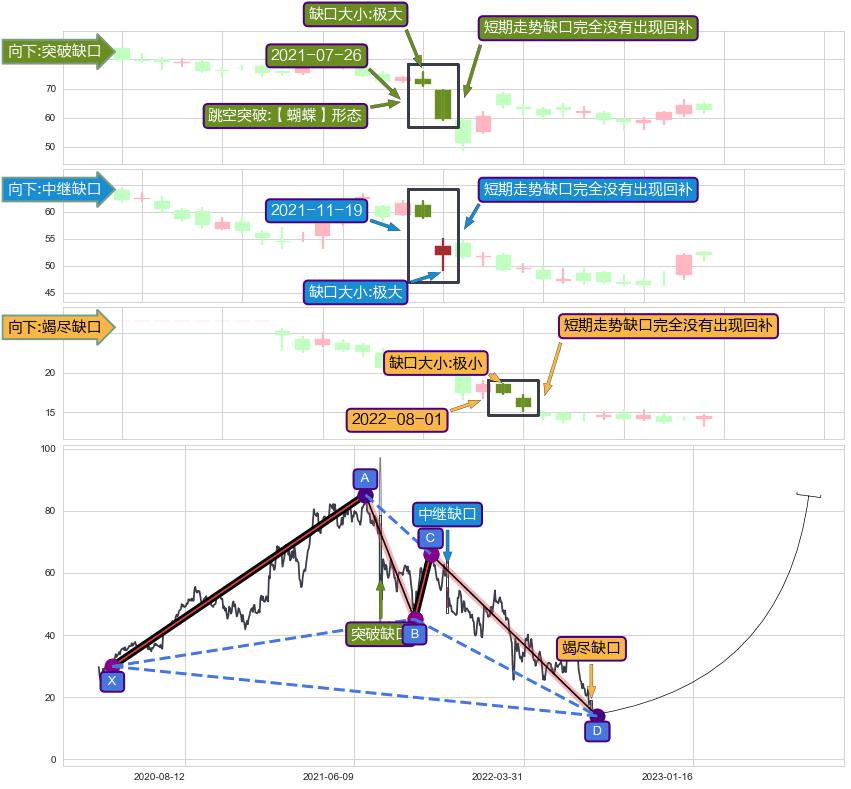 ➢ 2022-08-01形成:向下跳空【竭尽】缺口