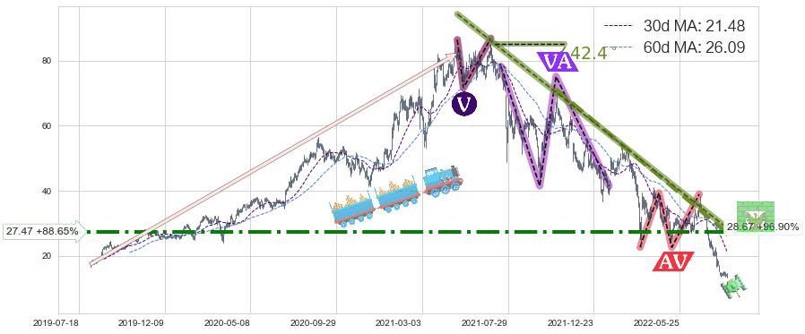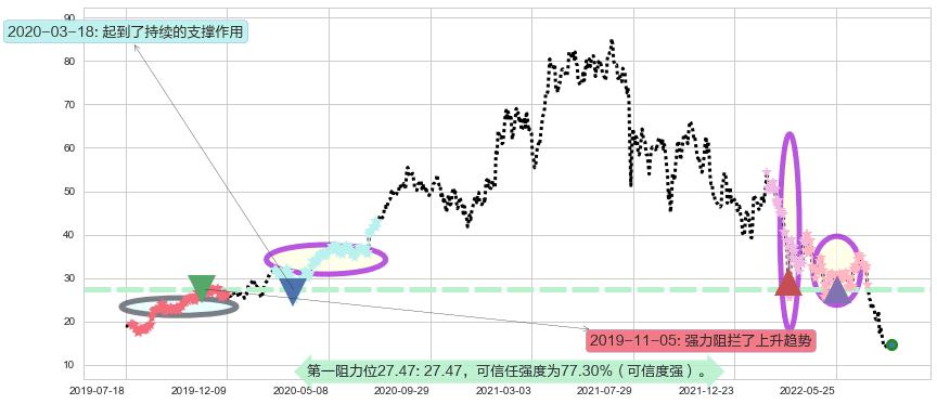 ♘ 阻力价格位27.47,可信任强度77.30%,距离最后交易2022-08-12形成的收盘价格14.56相差 +88.65%