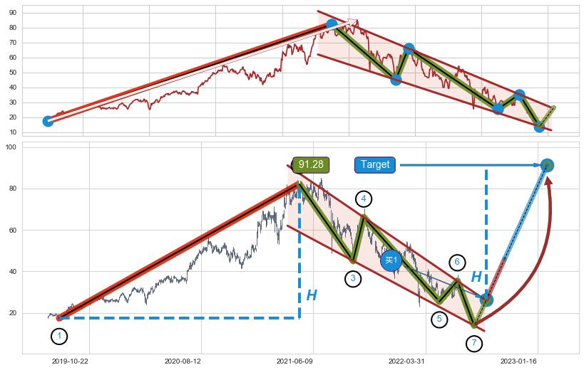 ➣ 最小中继整理涨幅→𝐇: 64.80 (𝐇旗杆的长度:旗杆起点→顶点)