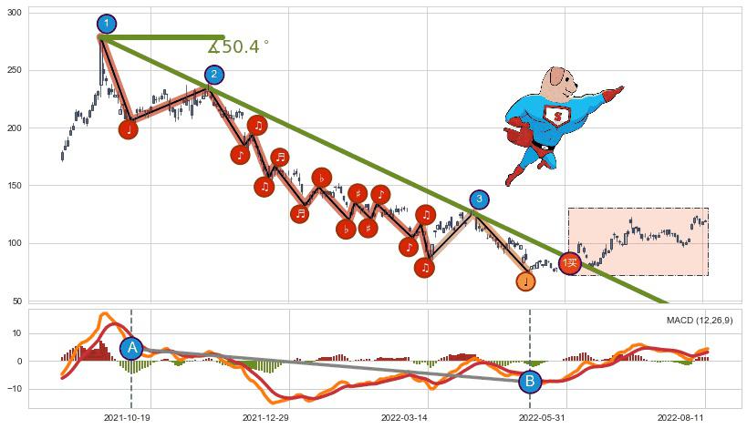 ➢ AI预测: 假定反转启动后, 第❷目标位置(2022-10-14, 100.80)