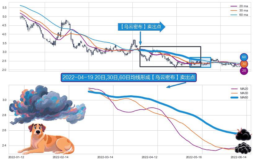 形态多维评估: ⚀ 2022-02-25日-2022-06-09日显现 20日-30日-60日均线 【乌云密布】卖出点 看空信号,后市看跌,卖出