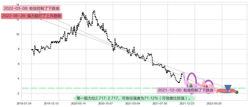 2022-06-28: 第一阻力位2.717强力阻拦了上升趋势,成功阻止了价格的继续上涨。