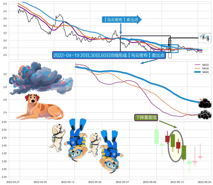 | 2 🅚:下跌两颗星 | 下跌三颗星 ➕ 🎢:【乌云密布】卖出点均线组合卖出点信号形成后,猜想后续下行持续,下跌加速(趋势跟踪) ☞ 看空信号 ⇥ 【均线】交织【🅚线】⇥ 综合量化分数: 45 | > |