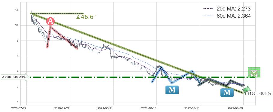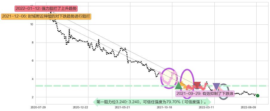 ♘ 阻力价格位3.240,可信任强度79.70%,距离最后交易2022-08-12形成的收盘价格2.170相差 +49.31%