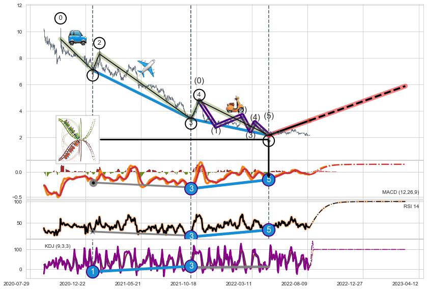 | 14 🅚:旭日东升 ➕ 🌊:波浪理论猜想下跌浪5已形成,猜想后续形成abc反弹上涨(均值回复) ☞ 看多信号 ⇥ 【🅚线】交织【图形】⇥ 综合量化分数: 55 | > |