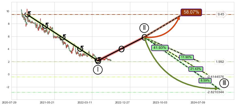 ➣ 大趋势循环浪继续向下概率41.93%