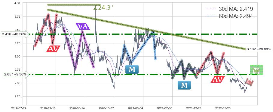 ♘ 阻力价格位2.657,可信任强度79.81%,距离最后交易2022-08-12形成的收盘价格2.430相差 +9.36%