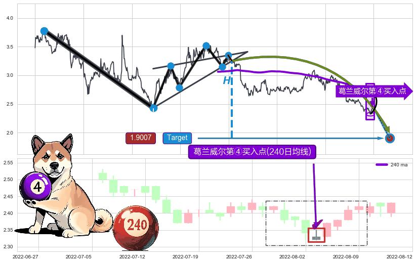 ♘ 阻力价格位3.416,可信任强度83.62%,距离最后交易2022-08-12形成的收盘价格2.430相差 +40.56%