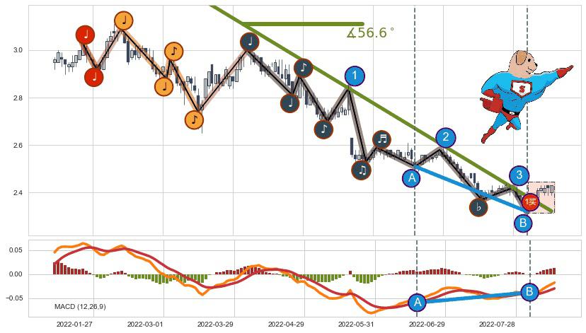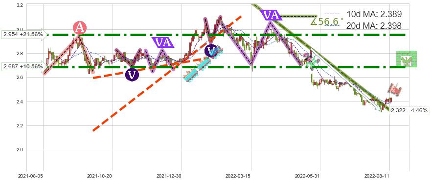 ⚔️ 2022-01-24-2022-08-11下跌趋势存在反转上涨[机会],其原下跌趋势的阻力位(2.322)已被突破[强支撑信号],原下跌趋势角度: 56.6˚