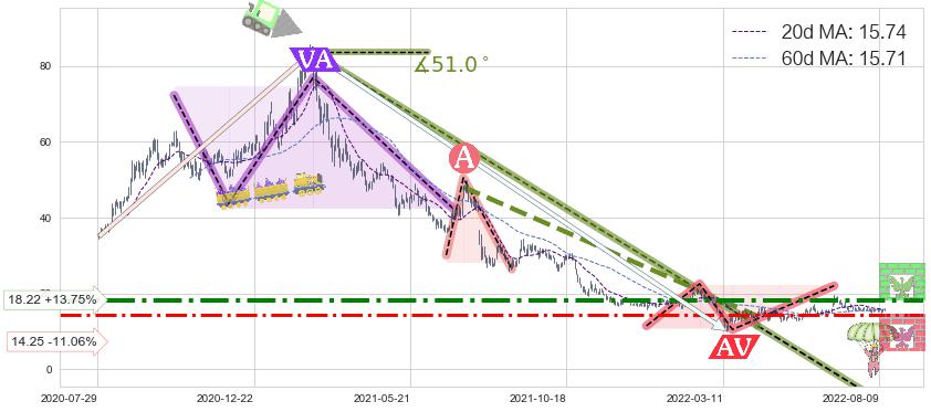 ♘ 阻力价格位18.22,可信任强度83.89%,距离最后交易2022-08-12形成的收盘价格16.02相差 +13.75%