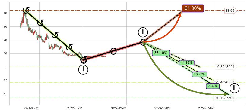 ➣ 大趋势循环浪继续向下概率38.10%