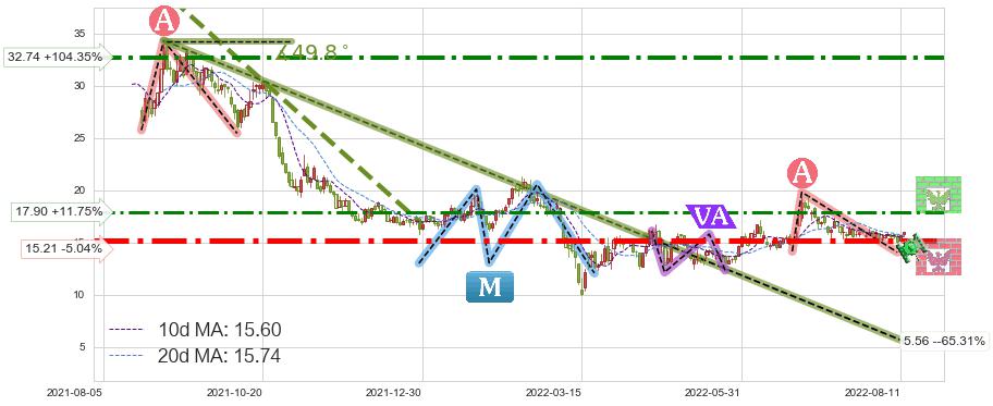 ♘ 阻力价格位17.90,可信任强度57.23%,距离最后交易2022-08-12形成的收盘价格16.02相差 +11.75%