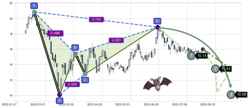 ➣ 已完成【蝙蝠】形态起点X: 2022-02-17, 终点D: 2022-06-28, 共88交易日