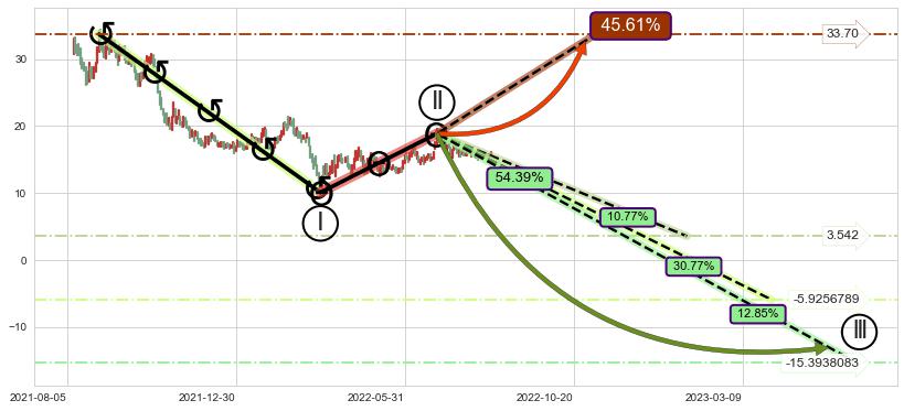 ➢ AI预测: 假定反转启动后, 第❷目标位置(2023-01-24, 15.49)