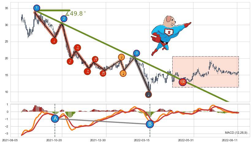 ➣ AI预测: 假定反转继续,第❷价格目标位置(2022-08-25, 13.43)