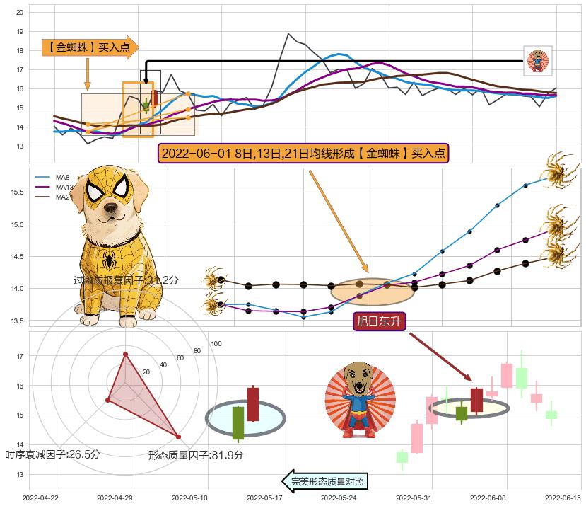 | 3 🅚:【金蜘蛛】买入点 ➕ 🌊:波浪理论下跌5浪延续反弹:猜想回调C点击穿突破,猜想持续蓄力反弹abc上涨方向(大周期趋势均值回复后小周期持续趋势跟踪) ☞ 看多信号 ⇥ 【均线】交织【图形】⇥ 综合量化分数: 60 | > |