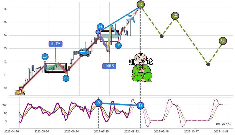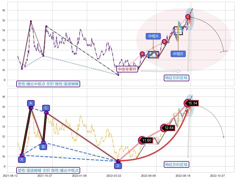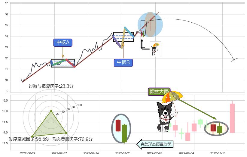 ➢ 【中枢B】:2022-07-15-2022-08-02,中枢由4笔构成,共13交易日, ZG=13.94, ZD=13.92