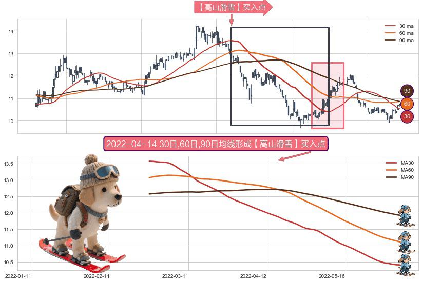形态多维评估: ⚀ 2022-02-25日-2022-06-06日显现 30日-60日-90日均线 【高山滑雪】买入点 看多信号,后市看涨,买入