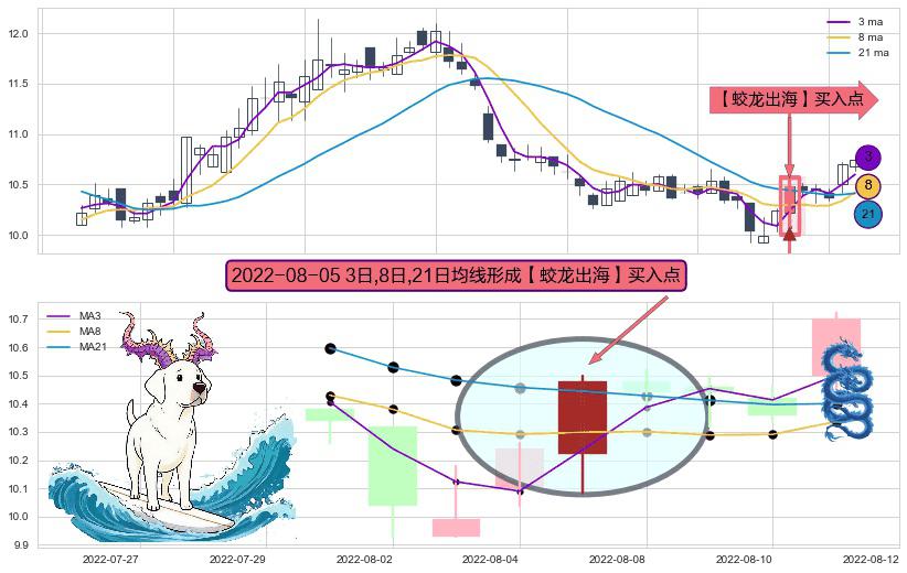 形态多维评估: ⚀ 2022-08-05日显现 3日-8日-21日均线 【蛟龙出海】买入点 看多信号,后市看涨,买入
