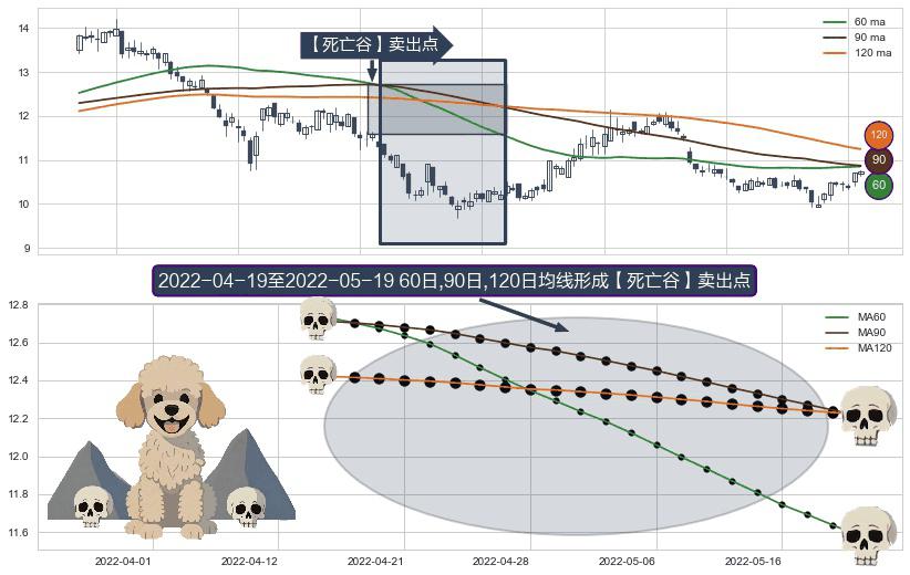 形态多维评估: ⚀ 2022-04-20-日至2022-05-19-日显现 60日-90日-120日均线 【死亡谷】卖出点 看空信号,后市看跌,卖出