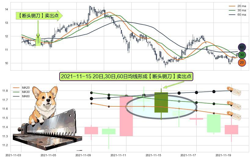 形态多维评估: ⚀ 2021-11-15日显现 20日-30日-60日均线 【断头铡刀】卖出点 看空信号,后市看跌,卖出