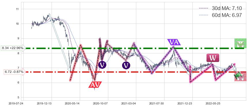 ♘ 支撑价格位6.72,可信任强度77.02%,距离最后交易2022-08-12形成的收盘价格6.78相差 -0.87%