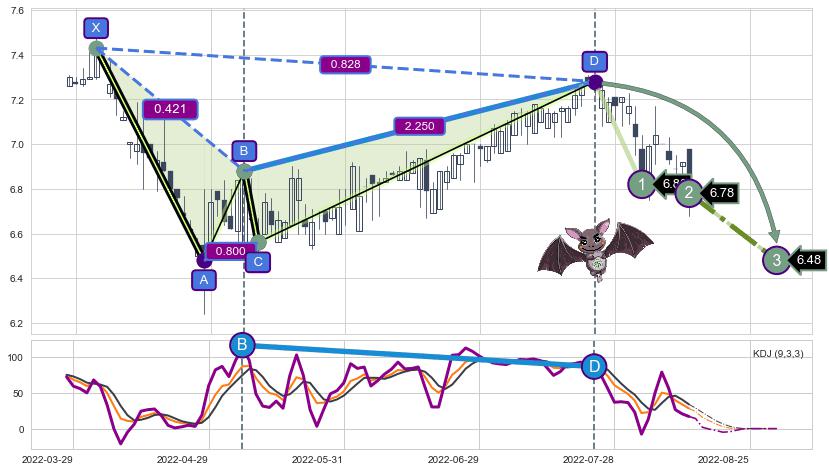 ➣ 已完成【蝙蝠】形态起点X: 2022-04-01, 终点D: 2022-07-25, 共75交易日
