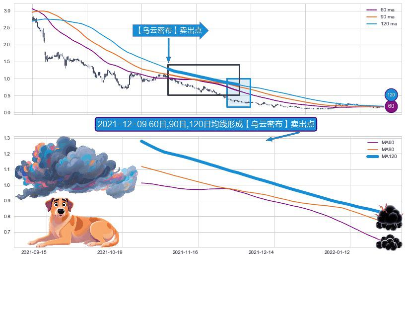 形态多维评估: ⚀ 2021-10-26日-2022-01-25日显现 60日-90日-120日均线 【乌云密布】卖出点 看空信号,后市看跌,卖出