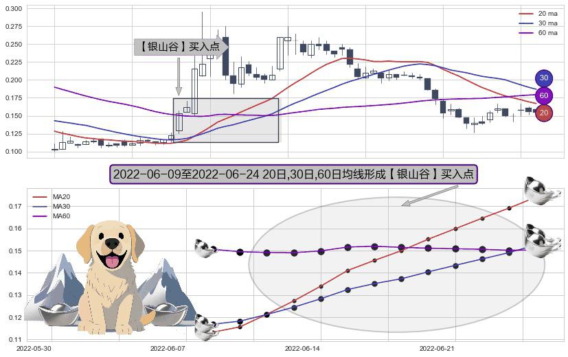 形态多维评估: ⚀ 2022-06-10-日至2022-06-24-日显现 20日-30日-60日均线 【银山谷】买入点 看多信号,后市看涨,买入