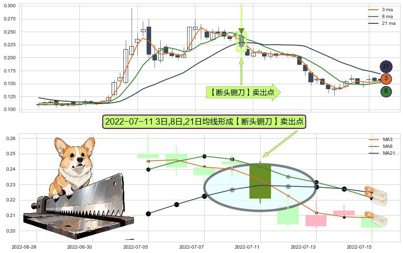 形态多维评估: ⚀ 2022-07-11日显现 3日-8日-21日均线 【断头铡刀】卖出点 看空信号,后市看跌,卖出