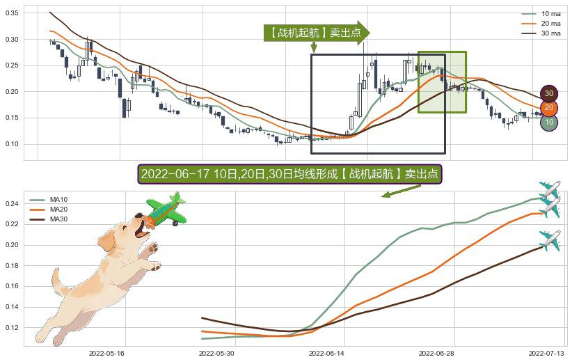 形态多维评估: ⚀ 2022-05-25日-2022-07-11日显现 10日-20日-30日均线 【战机起航】卖出点 看空信号,后市看跌,卖出