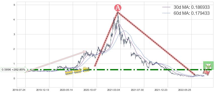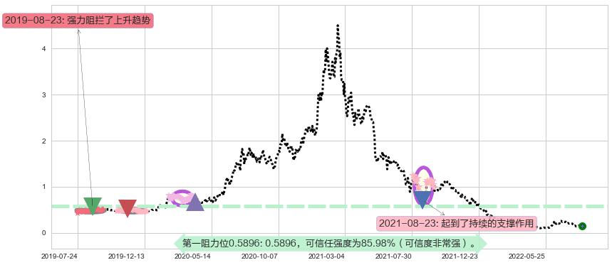 ♘ 阻力价格位0.5896,可信任强度85.98%,距离最后交易2022-08-12形成的收盘价格0.154000相差 +282.85%