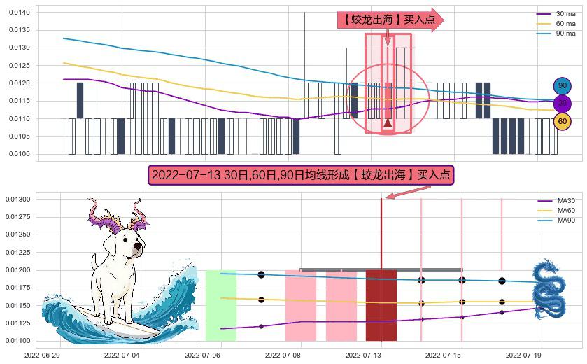 ⚀ 2022-07-13日显现 30日-60日-90日均线 【蛟龙出海】买入点 看多信号,后市看涨,买入