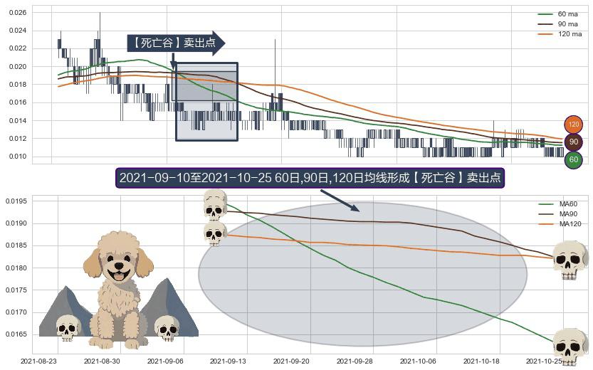 ⚀ 2021-09-13-日至2021-10-25-日显现 60日-90日-120日均线 【死亡谷】卖出点 看空信号,后市看跌,卖出