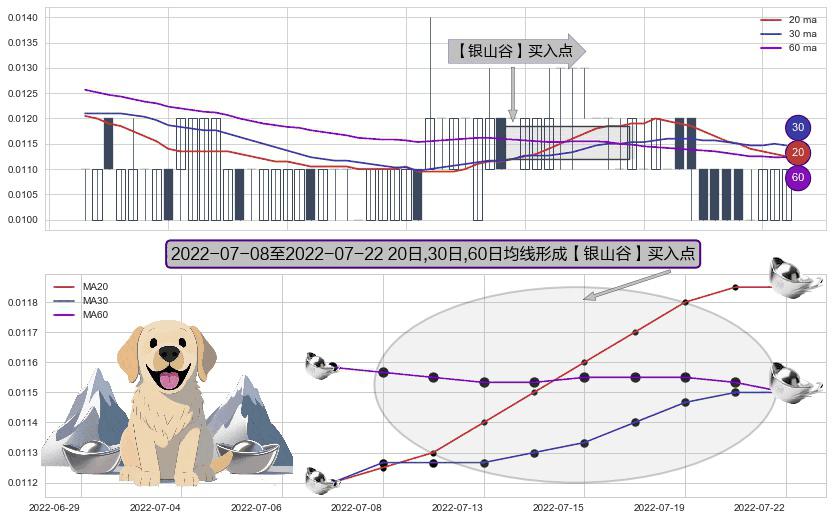 ⚀ 2022-07-12-日至2022-07-22-日显现 20日-30日-60日均线 【银山谷】买入点 看多信号,后市看涨,买入