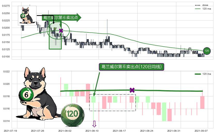 ⚀ 2021-08-09-日显现 葛兰威尔均线 120日均线 第⑥卖出点 走势反转见顶信号,后市看跌,卖出信号