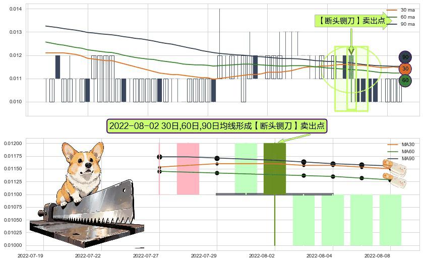⚀ 2022-08-02日显现 30日-60日-90日均线 【断头铡刀】卖出点 看空信号,后市看跌,卖出