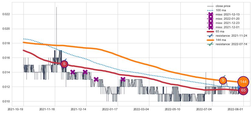 ⚂ 2022-07-14-日均线向上突破,2022-07-19-日重新下穿均线破位,均线阻力再次生效