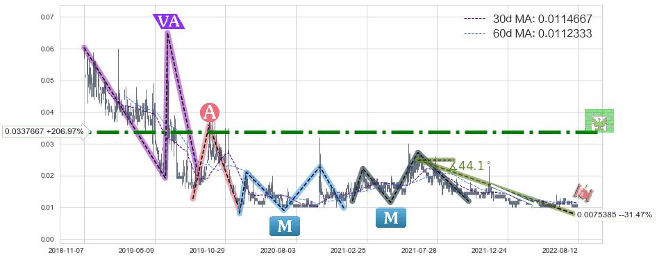 ♘ 阻力价格位0.0337667,可信任强度95.24%,距离最后交易2022-08-12形成的收盘价格0.0110000相差 +206.97%