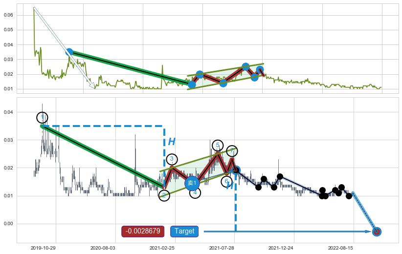 ➣ 最小中继整理跌幅→𝐇: 0.0220000 (𝐇旗杆的长度:旗杆起点→顶点)