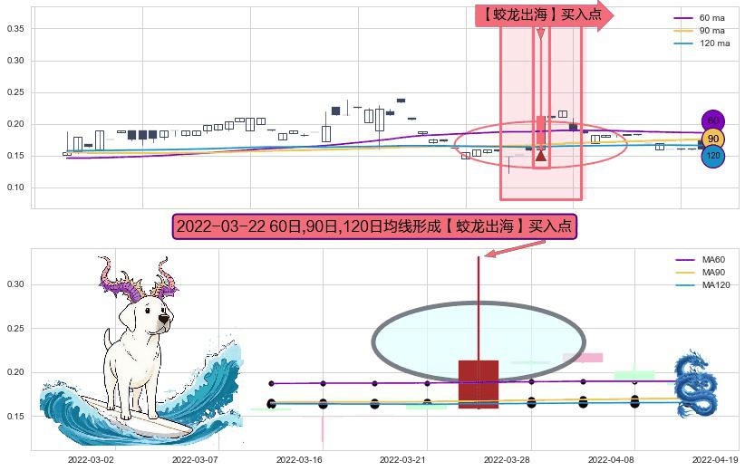 ⚀ 2022-03-22日显现 60日-90日-120日均线 【蛟龙出海】买入点 看多信号,后市看涨,买入